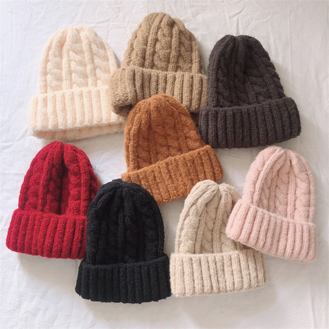 2024 Koreanische Mode Erwachsene Frauen einfarbig atmungsaktiv warme Wolle Kabel Twist Strick mütze für Strand Herbst Winter Image Style